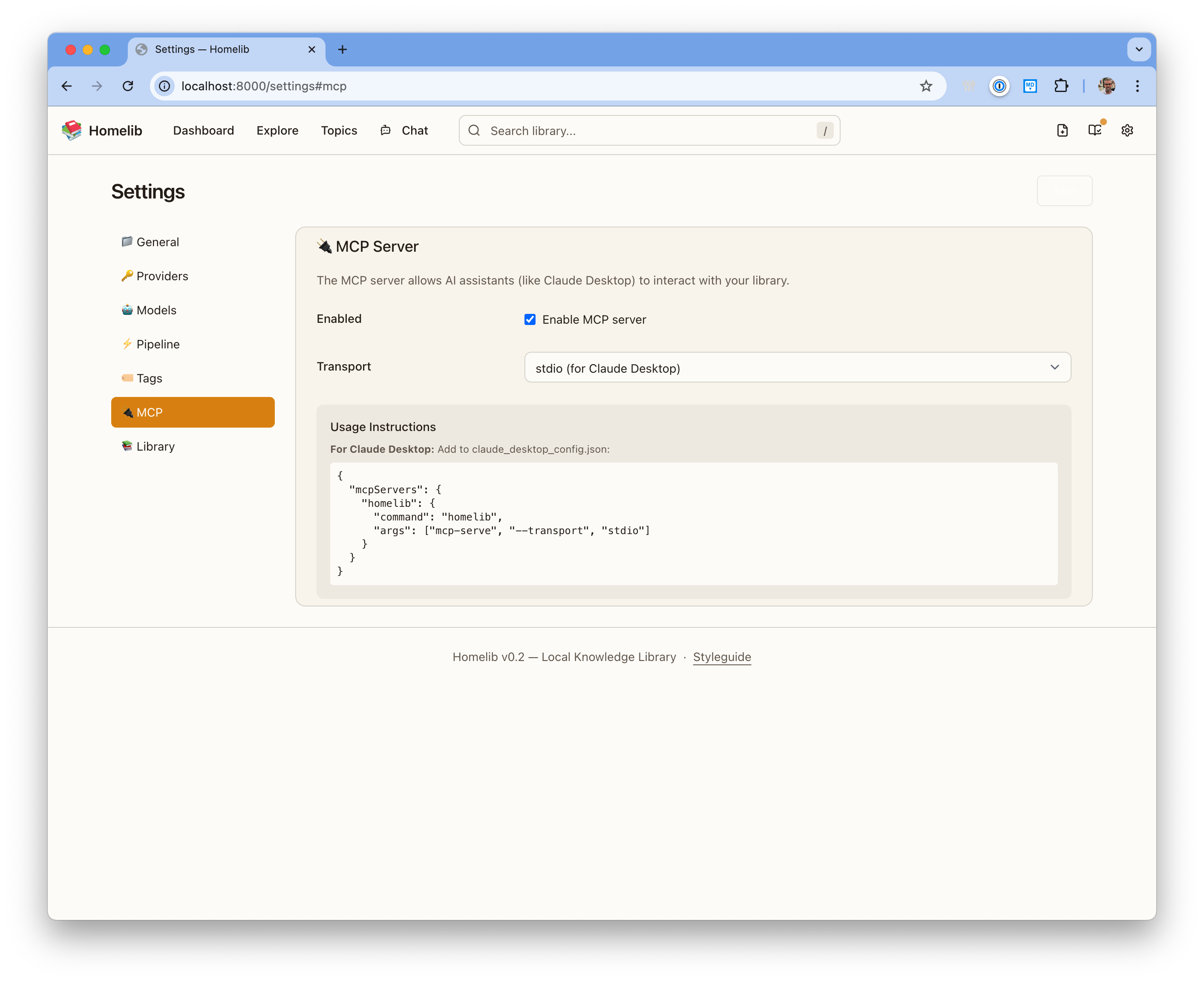 Connect to Claude Desktop, Cursor, or any MCP-compatible tool. Add items and query your library from any chat interface.