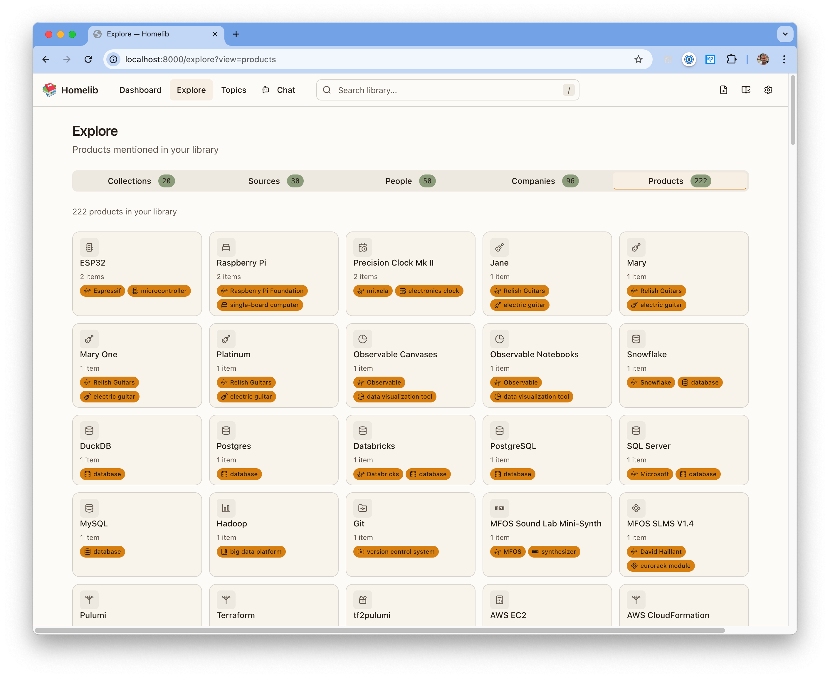 Those discoveries become new items in your library. As it grows, structure emerges: a directory of people, products, companies — all linked and searchable.